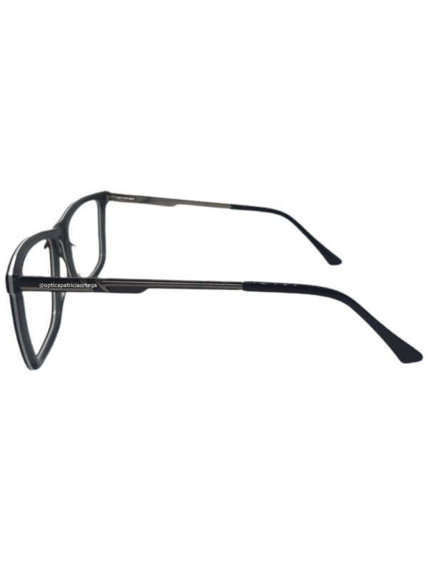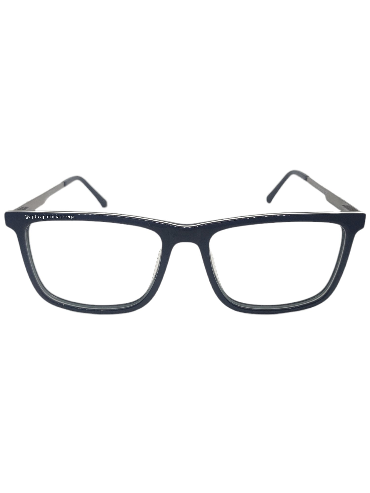 Montura con marco en acetato, brazos en acero, con sistema flex.