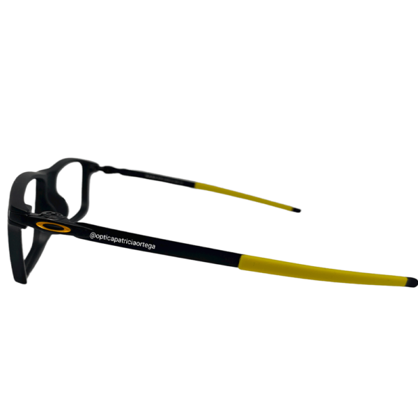 Montura deportiva negra con terminales de silicona amarilla en los brazos, de gran calidad y confort