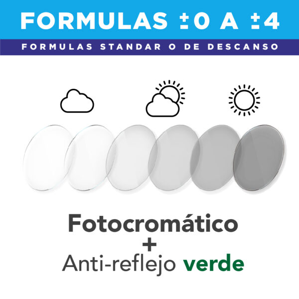 Lente que oscurece al salir al sol. Ideal para proteger tus ojos de los rayos UV + filtro anti reflejo verde