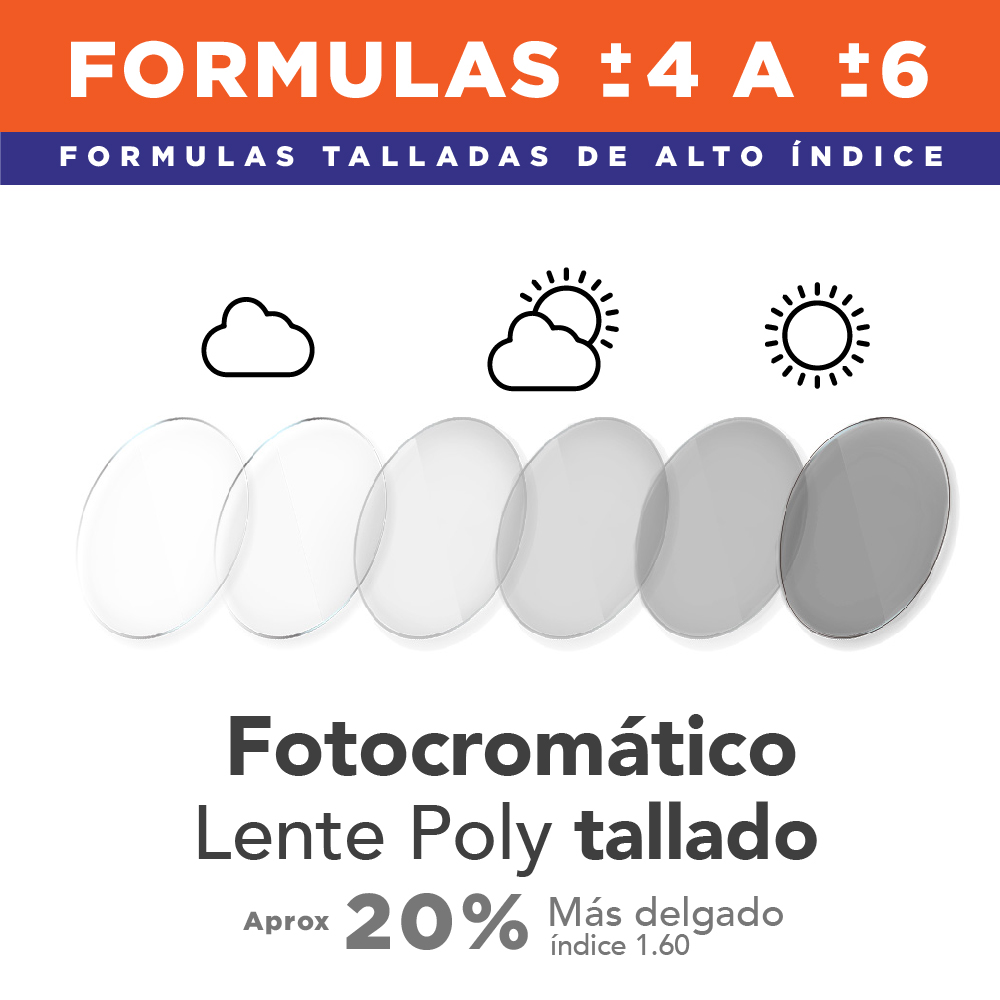 Lente especial para fórmulas altas con filtro que oscurece con el sol 20% más delgado